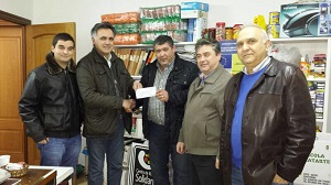 Miguel de Santiago entrega un donativo a Cáritas Interparroquial, que se suma a 2.600 k. de alimentos reunidos en la III edición del gol solidario