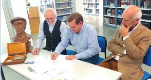 O alcalde de Fene, Juventino Trigo, e os fillos de Xosemaría Pérez Parallé, Francisco Pérez Porto e José Manuel Pérez-Parallé Porto, asinaron na biblioteca municipal de Fene o convenio de doazón polo cal os descendentes do segrel do Penedo entregan ao Concello de Fene unha colección de obxectos persoais, mobiliario, libros e diplomas que pertenceron ao seu pai. Ao redor …