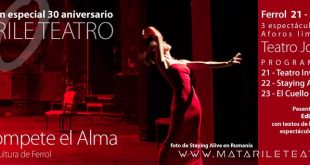 Matarile Teatro, una de las compañías gallegas con mas proyección internacional celebra este fin de semana tres décadas sobre las tablas de la escena con una sesión triple en el Teatro Jofre dentro del I Ciclo de Artes Escénicas Contemporáneas, 'Rómpete el alma', de la Concejalía de Cultura del Ayuntamiento de Ferrol. Fundada en Compostela en 1986, crean y gestionan …