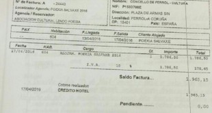 El comentario general surgido en la mañana de este lunes después de la primicia informativa de la Cadena COPE era de total sorpresa. Una factura emitida por un hotel de la calle Dolores por valor de 1.915 euros, IVA incluido, por la estancia de cuatro noches, a nombre de la concejalía de Cultura por servicios prestados a <Poesía salvaxe>. La …