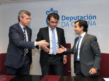 El presidente de la Diputación de A Coruña, Diego Calvo; el vicepresidente de la Xunta, Alfonso Rueda; y el presidente de la Fegamp y alcalde de Ferrol, José Manuel Rey, firmaron en la mañana de este lunes, día 13, el convenio de colaboración para poner en marcha los 7 Grupos de emergencia supramunicipales (GES), en la provincia de A Coruña. …