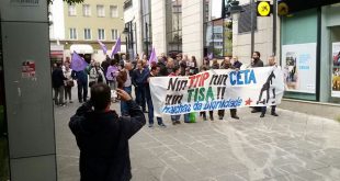 Varias movilizaciones celebradas en distintos puntos de la geografía gallega, entre ellos Ferrol, este sábado han mostrado su rechazo a la «ruina para el pueblo gallego» que supondrán los tratados de libre comercio entre Europa y Estados Unidos (TTIP) y entre Europa y Canadá (CETA). Las protestas coinciden con una jornada internacional de reivindicaciones, convocada por la Plataforma Alter Summit. …