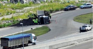 Sobre las ocho menos diez de la mañana de este lunes se produjo un accidente en la rotonda interior del Puerto Exterior, en Caneliñas, al volcar un camiónde gran tonelaje que iba cargado de carbón con destino a la central térmica de Endesa en As Pontes, resultando herido el conductor. En el lugar del accidente se personaron efectivos de la …