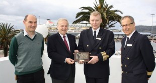 El crucero «Balmoral» hizo en la mañana de este jueves, por primera vez, escala en Ferrol. Por este motivo, el presidente de la Autoridad Portuaria de Ferrol-San Cibrao, José Manuel Vilariño, obsequió al capitán del barco, Lars Juel Kjeldsen, con una metopa del puerto de Ferrol, como recuerdo institucional de su paso por la ciudad y con el objetivo de …
