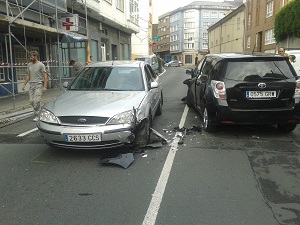 Un aparatoso accidente de tráfico se registró a las doce y cuarto de la mañana de este lunes día 14, en la confluencia de las calles Venezuela y Nueva de Caranza, cuando un vehículo, “Volkswagen Polo-tdi”, salía del stop en la primera de las calles y un “Toyota Kerzo” que subía por la segunda trató de evitarlo colisionando de frente-lateral contra …