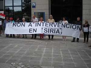 En la tarde de este viernes, día 6, un amplio grupo de personas se dio cita ante el edificio de los servicios administrativos de la Xunta de Galicia en la plaza de España, con el fin de manifestar su protesta contra la posible intervención de varios estados en la guerra de Siria. La concentración fue apoyada por Esquerda Unida, “Fuco Buxán”, …