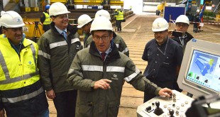 Navantia ha realizado la maniobra de volteo de la primera virola correspondiente al bloque 200 de la primera subestructura del programa Hywind para Statoil, lo que se asemeja a una puesta de quilla en la construcción naval. La virola, de aproximadamente 70 toneladas de peso y 14,4 metros de diámetro, ha finalizado su etapa de armado y soldado en horizontal …