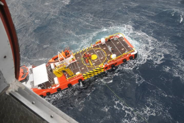El buque de Salvamento Marítimo SAR Garvia está remolcando al buque Esnaad 715, que estaba a la deriva sin tripulación 64 millas al norte de Cabo Ortegal. Hacia las 11.30 horas de este jueves, día 6, dos técnicos de operaciones especiales (de la Base Estratégica de Fene) y un rescatador han descendido desde el helicóptero Helimer 209 hasta la cubierta …