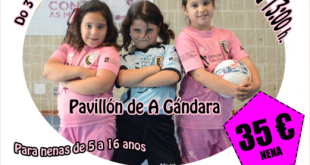 Un año más y ya van cuatro, el Pabellón de A Xunqueira (San Valentín), acogerá el Campus de fútbol sala femenino María Vieira “Mavi” Concello de Fene, el cual tendrá lugar del 10 al 21 de julio, para niñas entre 5 y 25 años, con horario de lunes a viernes, de 10:00 a 14:00 horas. En este IV Campus Mavi …