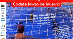 Este fin de semana se disputó en la Piscina Javier Gómez Noya de Caranza y organizado por el Club Marina Ferrol, el Campeonato Cadete Gallego de waterpolo de invierno. Con la participación de seis equipos, el sábado se disputó la fase de grupos que determinó los enfrentamientos por las posiciones finales que se disputaron en la mañana del domingo. El …
